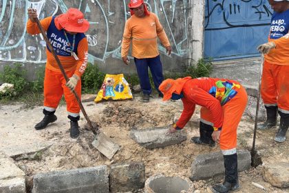 As equipes da Seminf atuam com o apoio de uma escavadeira hidráulica executando a dragagem e o desassoreamento do igarapé. Com outra frente de serviços, a equipe da Semulsp atua na limpeza do entorno, e na remoção de lixos filtrados na ecobarreira, que também foi instalada pela prefeitura, no igarapé.