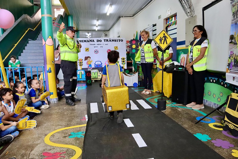 A atividade, que visa sensibilizar e educar as novas gerações sobre a importância da segurança viária, contou com a participação do agente de trânsito Arne Santos. Em uma interação direta com os alunos, ele abordou regras básicas de trânsito, a necessidade de respeitar as leis, os cuidados ao atravessar a rua e o comportamento adequado dentro do transporte público.