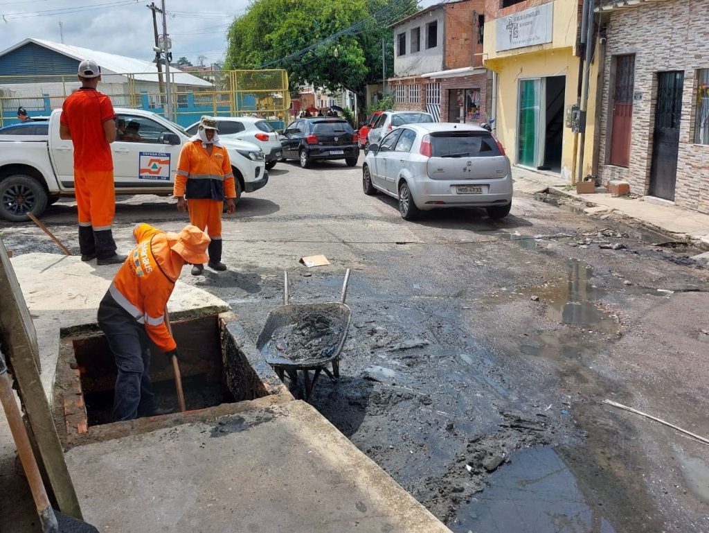 A Prefeitura de Manaus, por meio da Secretaria Municipal de infraestrutura (Seminf), realiza nesta sexta-feira, 12/12, a recuperação da drenagem na rua Mauá da Serra, no bairro Zumbi dos Palmares, zona Leste. As equipes atuam na desobstrução total da REDE, que estava comprometida por acúmulo de lixo e sedimentos, com apoio de caminhões hidrojato para sucção dos resíduos.
