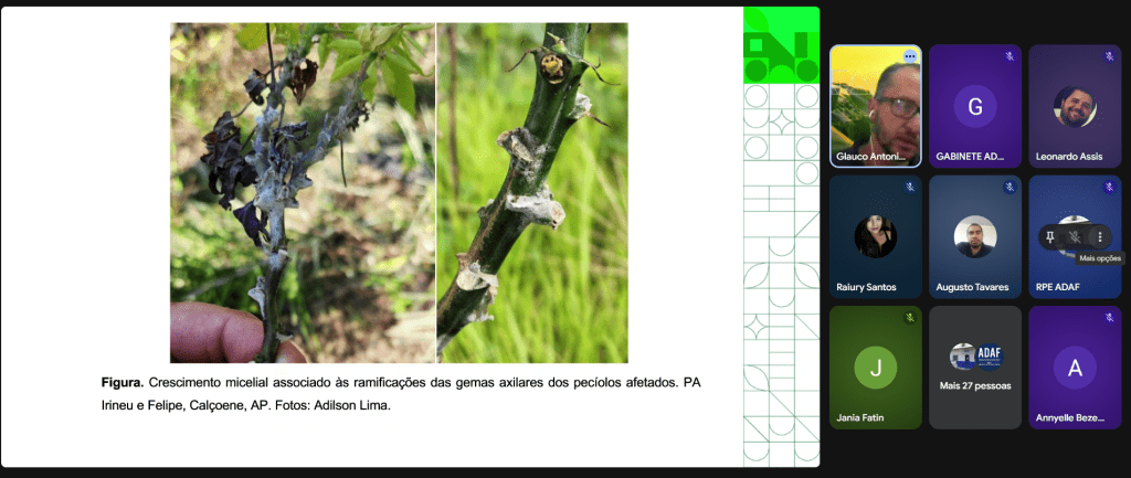Os servidores da Agência de Defesa Agropecuária e Florestal do Estado do Amazonas (Adaf) que atuam na capital e no interior do estado participaram, na tarde desta quinta-feira (25/05), de um treinamento on-line sobre a praga quarentenária Vassoura-de-Bruxa da Mandioca. A capacitação contou com a explanação do auditor fiscal do Ministério da agricultura e pecuária (Mapa), Glauco Teixeira.