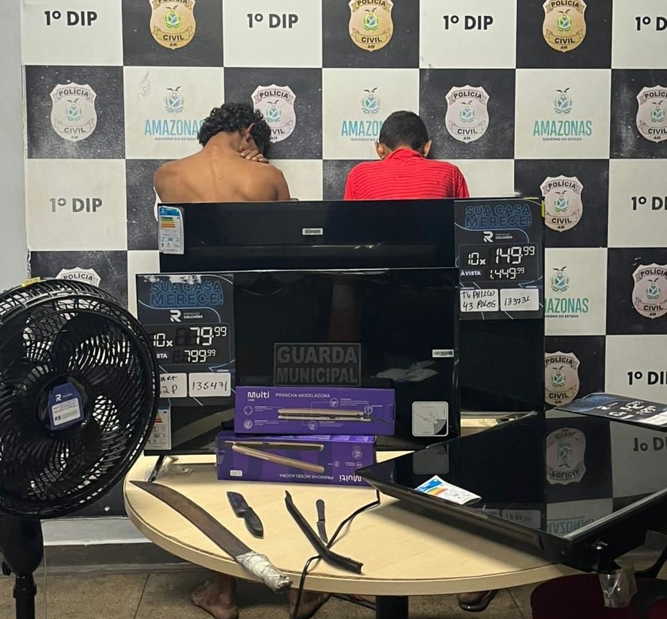 A Guarda Municipal de Manaus (GMM) deteve dois indivíduos na manhã desta quarta-feira, 21/1, após ação durante patrulhamento na área central da cidade. A abordagem ocorreu nas proximidades da rua Miranda Leão, quando um homem foi visto saindo de um estabelecimento comercial portando televisores e um ventilador, e os itens foram identificados como produto de furto qualificado.