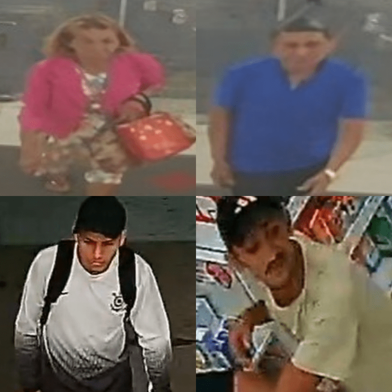 polícia Civil do Amazonas divulga imagens e pede colaboração para identificar um casal e dois homens suspeitos por crimes em drogarias no Japiim.