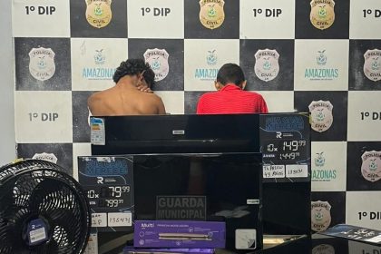 Guarda Municipal de Manaus deteve dois em flagrante por furto qualificado a comércio no Centro e recuperou televisores e um…